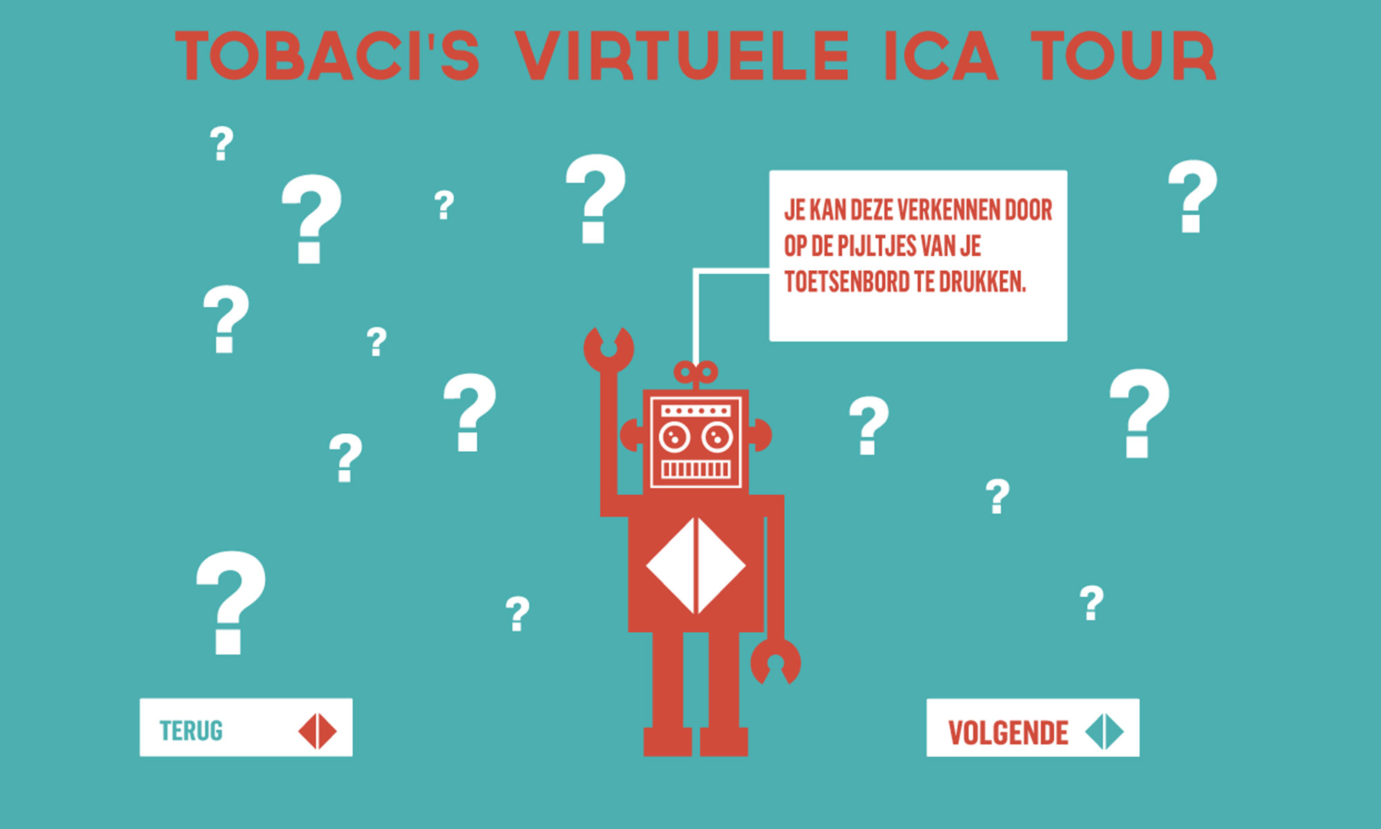Als projectgroep kregen we de opdracht om een interactieve multimedia materiaal te maken waarmee aankomende studenten die net van de HAVO/VWO afkomen, net afgestudeerde MBO studenten en ouders extra informatie kunnen vergaren. De belangrijke punten van het schoolgebouw hebben we verwerkt in de virtuele tour. Je kunt meer te weten komen over de profielen die aangeboden worden in het tweede leerjaar. Tobaci, de virtuele ica bot leidt je door het schoolgebouw.